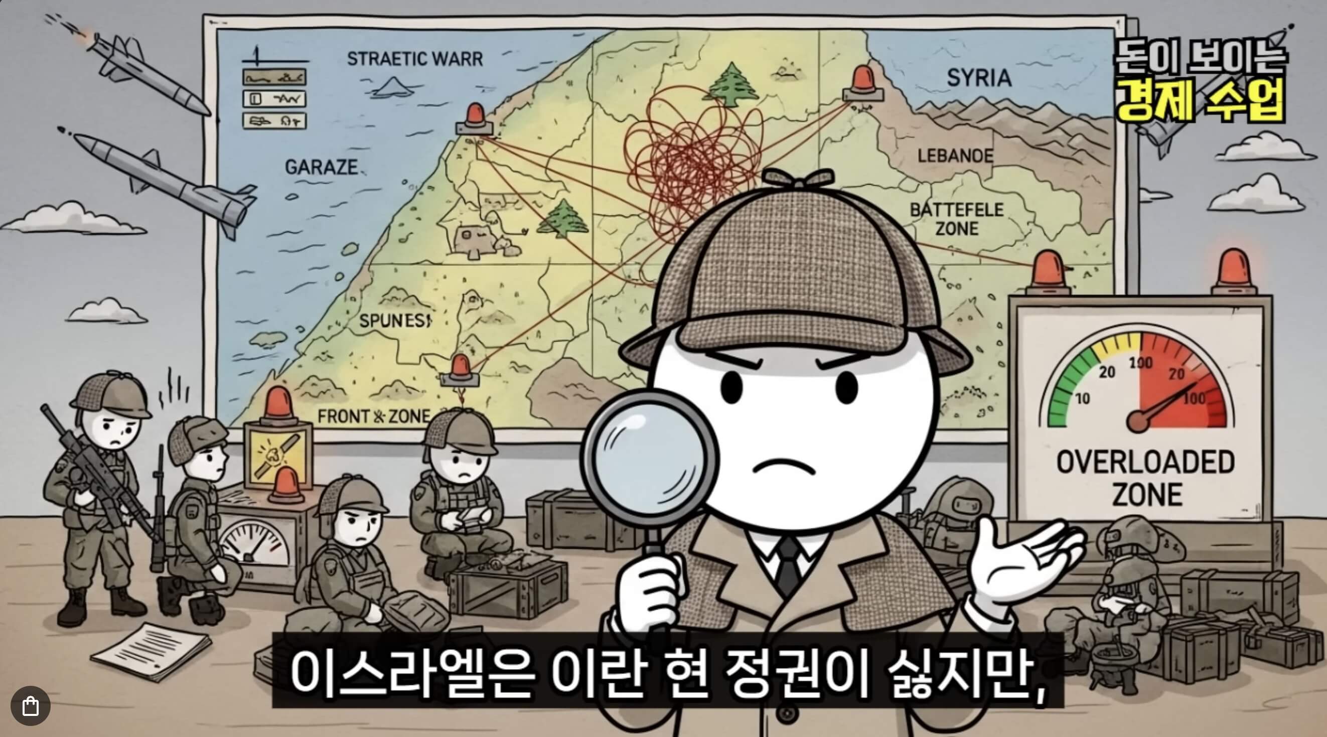 두 번째 이유는 전술적 부담입니다. 이스라엘은 최근 몇 년간 가자 지구, 레바논, 시리아 등 여러 전선에서 작전을 펼쳐왔습니다. 이 과정에서 방공 시스템이 소모되고, 무기 재고도 줄어들었으며, 작전 여력도 제한적입니다. 만약 이란 정권이 이스라엘의 개입을 빌미로 전면 대응에 나선다면, 이스라엘은 또 다른 전선을 감당해야 합니다. 헤즈볼라도 움직일 수 있고, 예맨의 후티 반군도 가세할 수 있습니다. 확전의 리스크가 너무 큽니다. 이스라엘 입장에서는 이란 내부의 혼란을 지켜보는 것이 차라리 이득입니다. 직접 나서서 비용을 치르는 것보다 이란이 내부 문제로 소진되는 것을 방치하는 것이 더 효율적이라는 계산입니다.